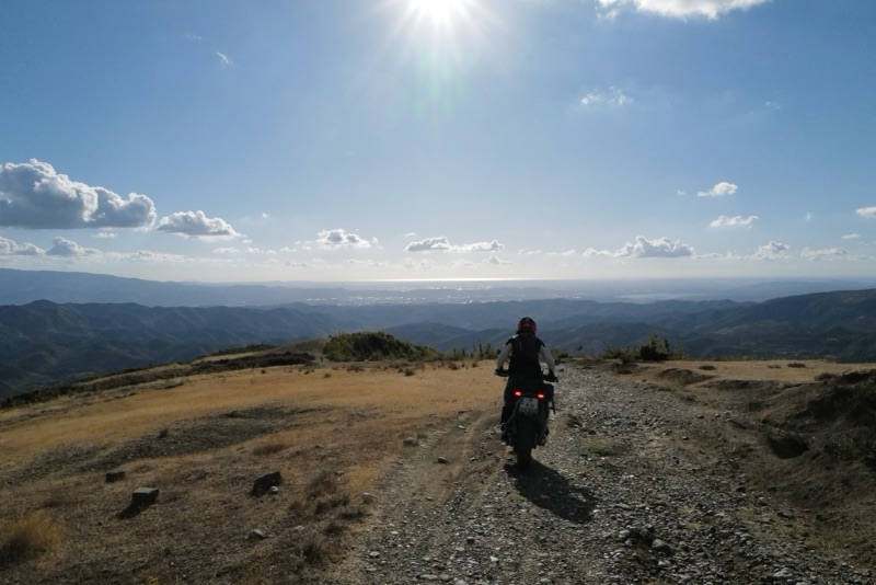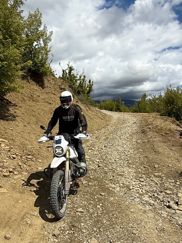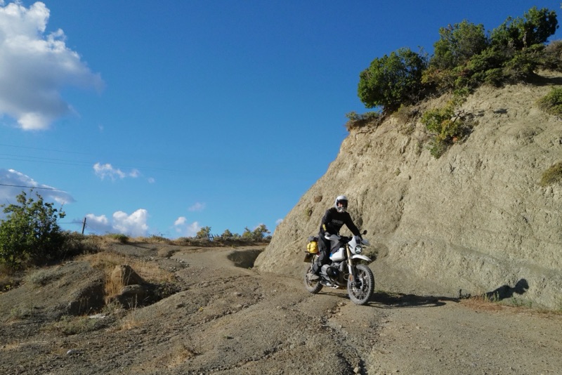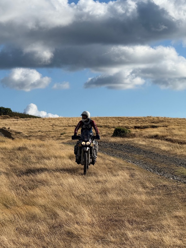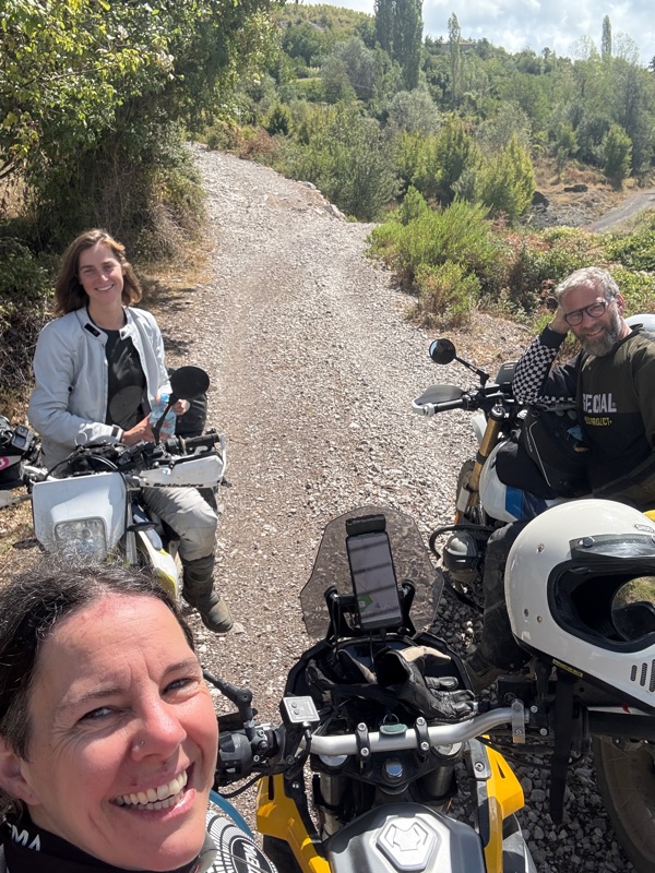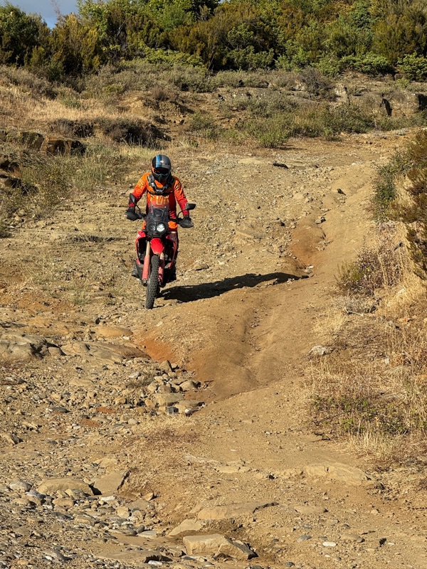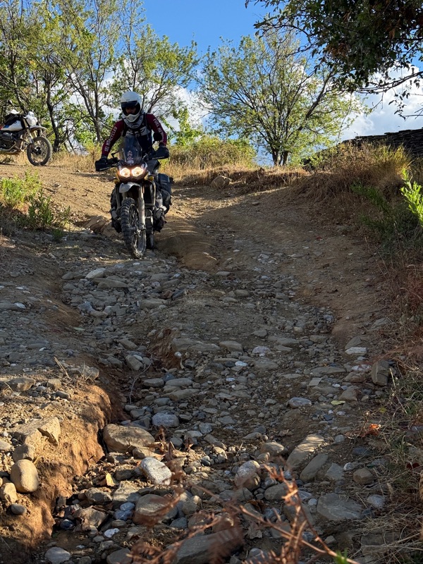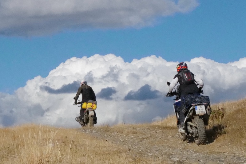Schon klein die Welt der Enduristen. Zumal auch Rianne sagt, sie sei quasi niemandem begegnet bisher. Ziemlich tough alleine so zu reisen. Nachdem wir fertig gequatscht haben fährt sie runter um ihr Kühlerproblem zu lösen und wir hoch um uns dem losen Geröll zu stellen.