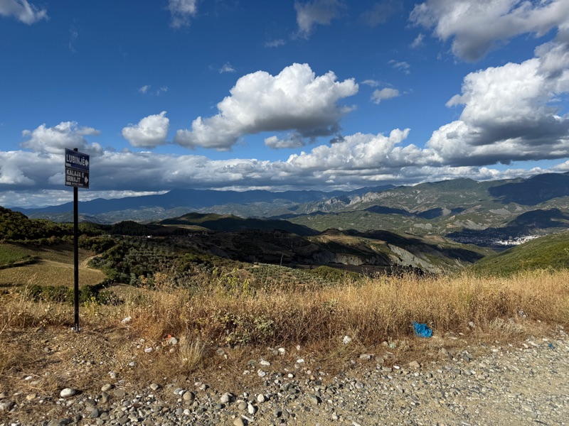 Dort gibt es noch einen Cappucchino und wir überlegen wohin wir es noch schaffen. Wir denken Berat, das offizielle Ende des Tages wäre schaffbar also buchen wir dort was. Jetzt haben wir noch was vor also ein bisschen Angasen. Weiterhin in technischem Gelände, das extrem viel Spass macht und jetzt auch noch mit stimmungsvollem Abendlicht und die Landschaft wird unverschämt hübsch.