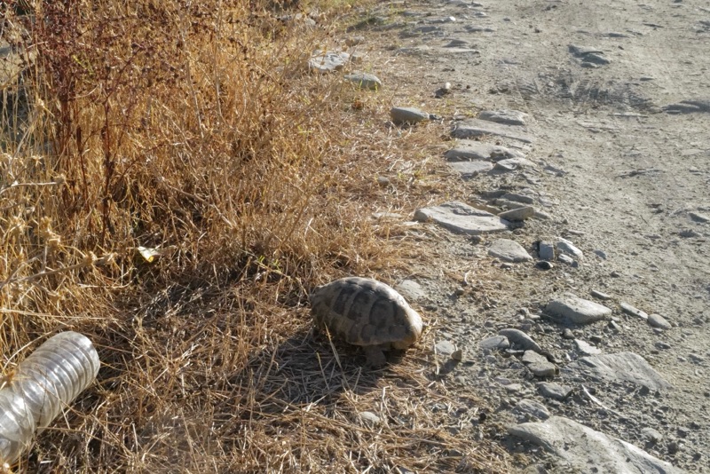Die Idee jetzt nicht mehr viele Pausen zu machen klappt deshalb nicht so gut. Alles so fotogen hier. Sogar eine Schildkröte kreuzt extra unseren Weg (nicht die erste und nicht die letzte die wir sehen). Überhaupt haben wie sehr viele Tiere heute auf den Weg gehabt. Esel, Puten, Hühner, Hunde, Katzen, Laufenten, Wachteln, Eichhörnchen.