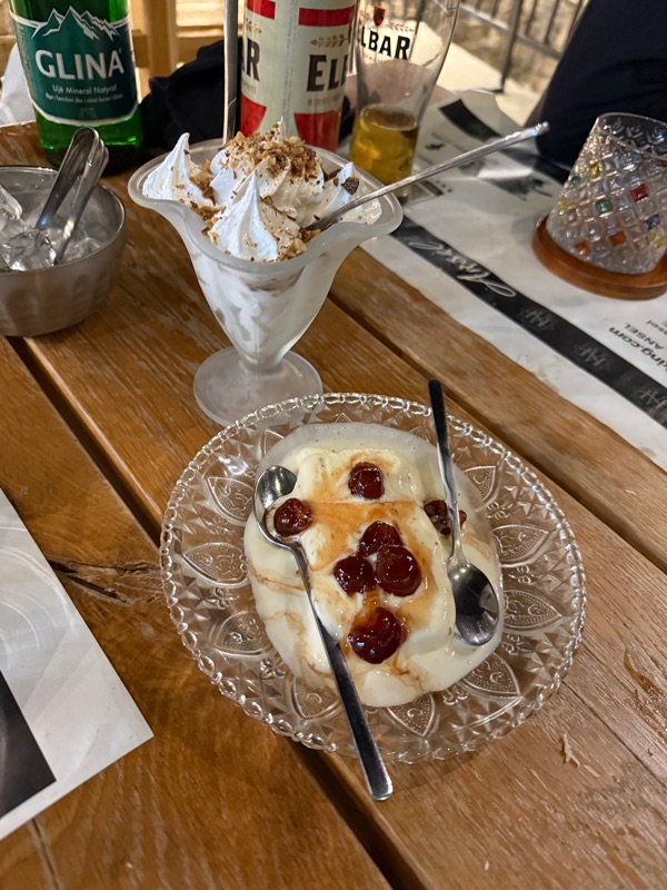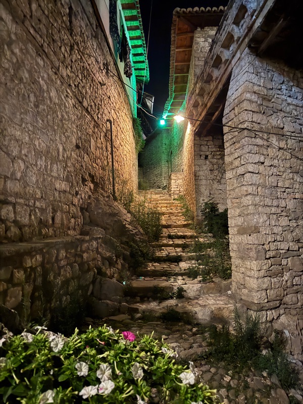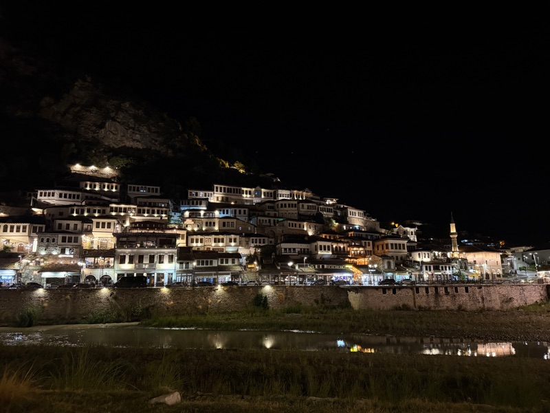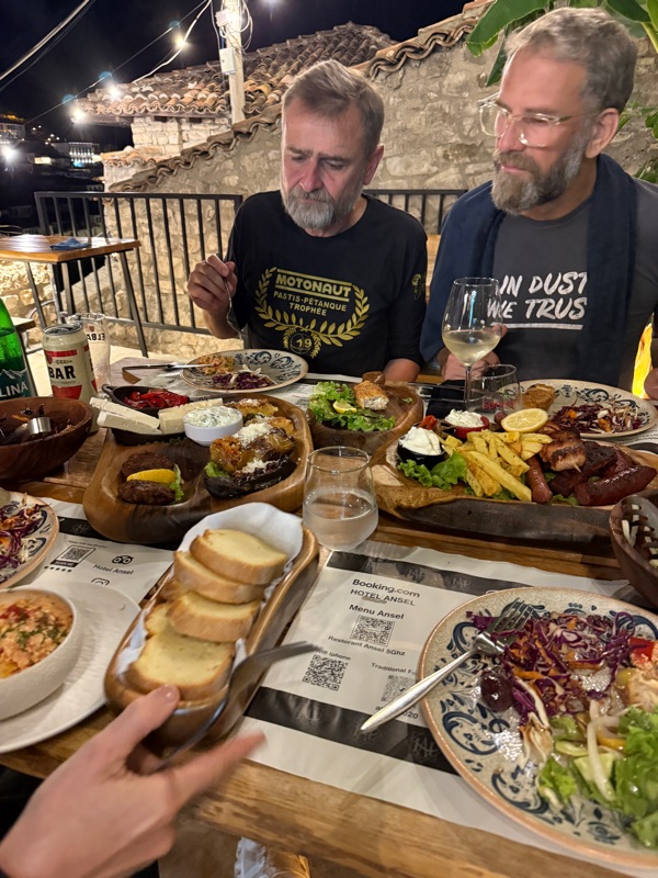 Aber irgendwann schaffen wir es in der Abendsonne nach Berat und nach einer halben Stunde Suche finden wir sogar unsere Unterkunft. Ankommensbier, in die Stadt laufen und lecker Abendessen. Ein super Tag. Danke ans Universum! Und da Thom vor wenigen Wochen schon mal in Berat war, kann er heute prima als Reiseführer fungieren :-)