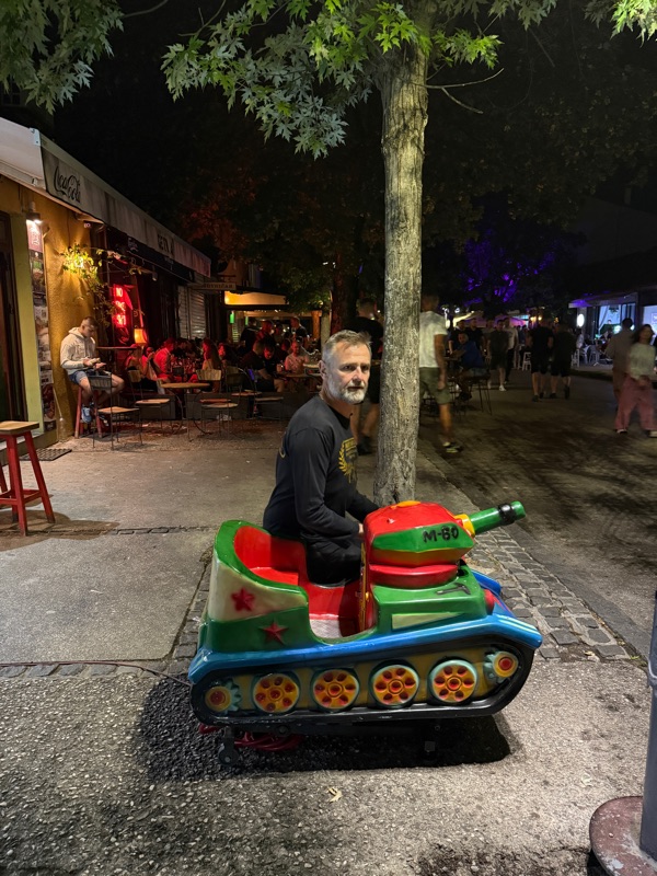 Nach einem Austausch von Deutschem Bier (eine Kiste als Gastgeschenk) und Nicšik Bier (zum sofortigen Verzehr, während wir aufs Taxi gewartet haben) sind wir dann wieder in die Stadt gefahren und haben uns mit Sandra und Fee zum Essen getroffen.