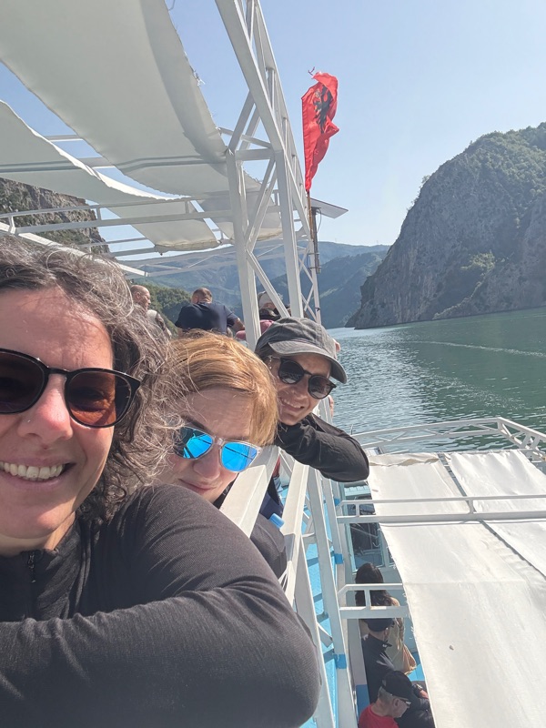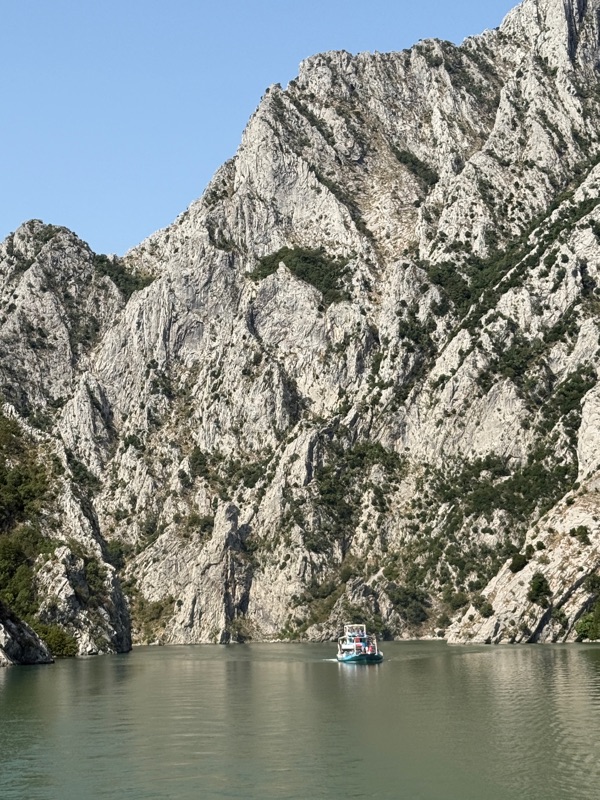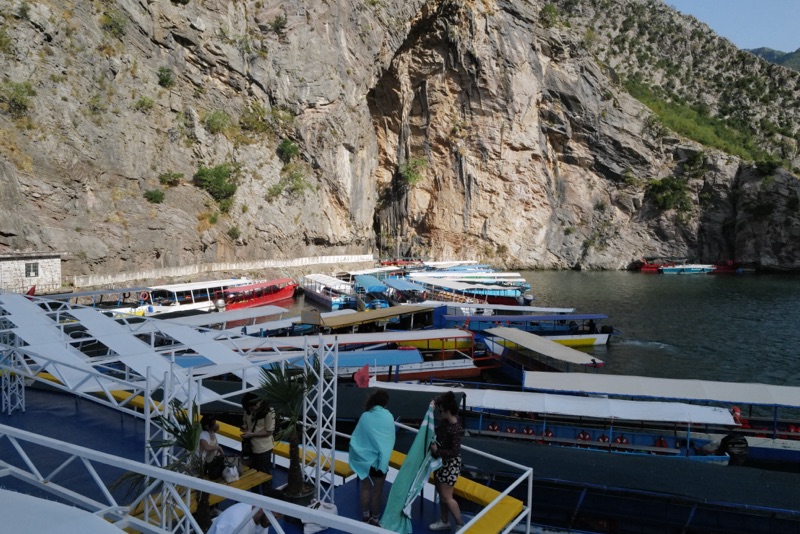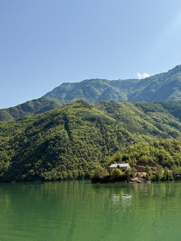 Als wir auf der anderen Seite in Fierze ankommen, geht es deutlich flotter, wir sind ja auch das einzige Boot das ankommt, im Gegensatz zur Ablegestelle, wo mehrere Fähren und viele Ausflugsboote abgelegt haben.