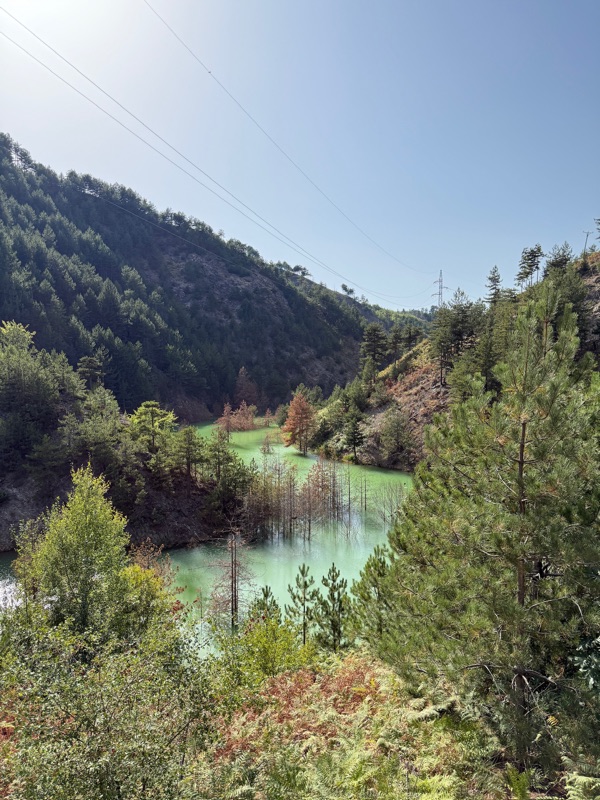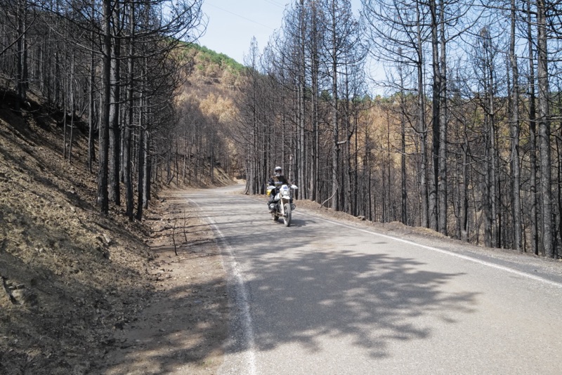 Danach geht es Kurve um Kurve durch genau solche Seitenarme, nur leider muss man jetzt einmal den ganzen Arm umfahren auf der Strasse. Wir umfahren viele davon und die Kurven hören nicht auf. Durch Kalk, Granit, Sandstein und alte Waldbrandgebiete