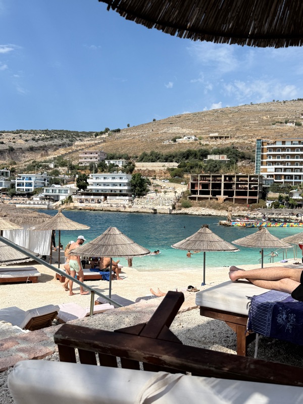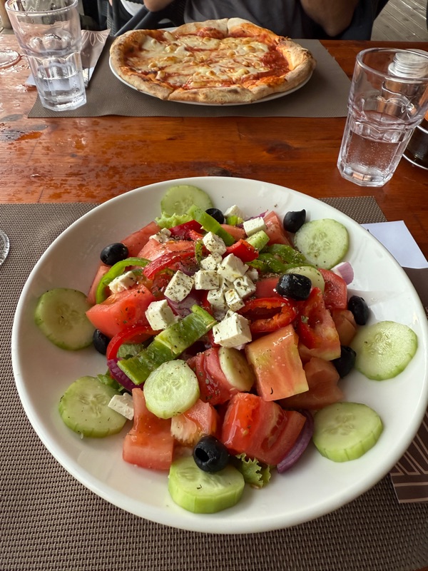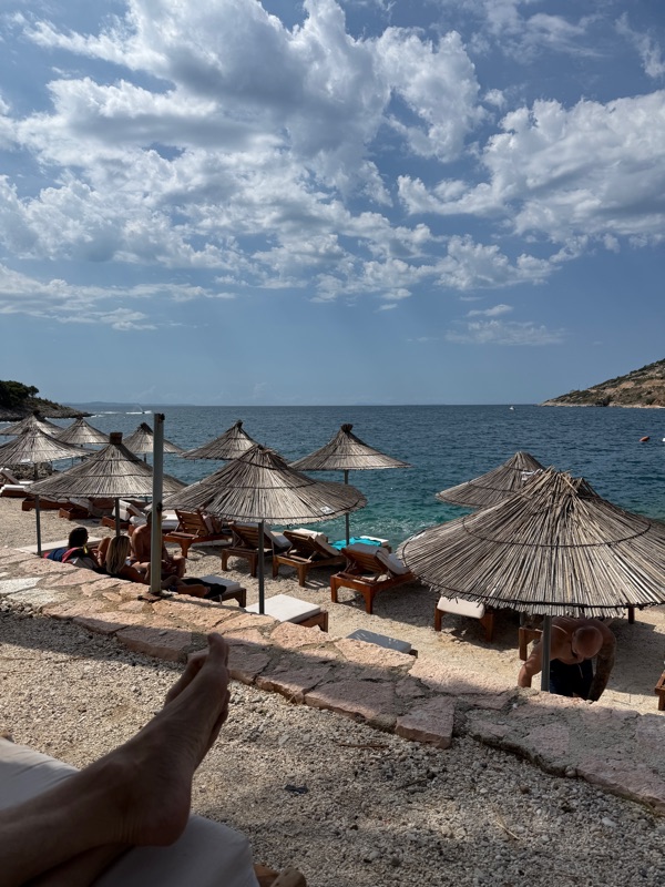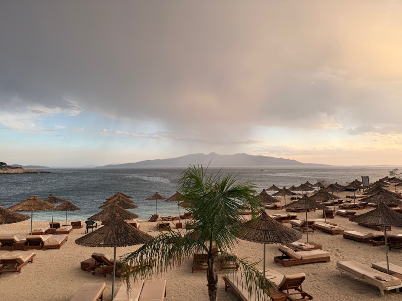 Zum Abendessen gehen wir heute in eine andere Strandbar von der man einen guten Blick auf Korfu hat das ja nur ein paar km Luftlinie ist. Leider fängt es genau dann zu Gewittern und regnen an als wir essen wollen. Aber nach ein bisschen warten ergibt sich eine Regenlücke in der wir trocken essen können.