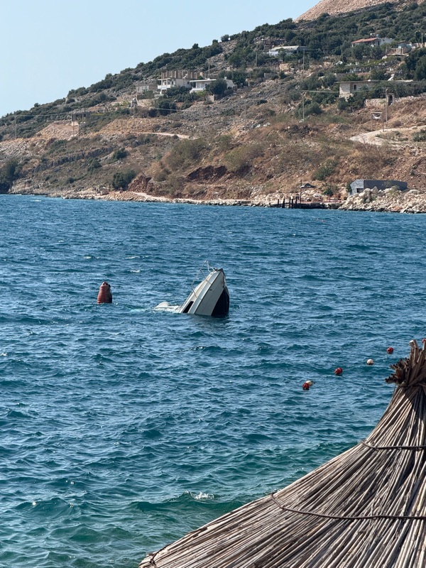 Nachnittags sagt Uller so beiläufig: da geht gerade ein Boot unter. Ich schaue hin und tatsächlich, das Boot das heute Morgen normal im Hafen lag verschwindet binnen Minuten unter der Wasseroberfläche und zieht auch die Boje, an der es fest war, noch mit runter. Einzig ein Kissen vom Deck und eine Rettungsweste kommen wieder an die Oberfläche. Sehr schräg. Vor allem, weil keine Menschen zusammengelaufen sind sondern das alles ganz leise und unscheinbar von Statten ging
