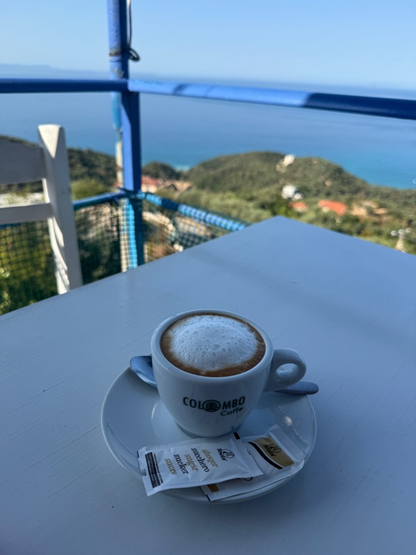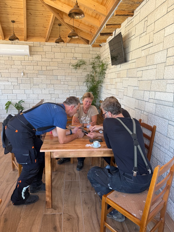 Danach volltanken und los auf den TET. Der geht erstmal über Strasse, dann trinken wir noch einen gemütlichen Cappuccino mit bester Aussicht