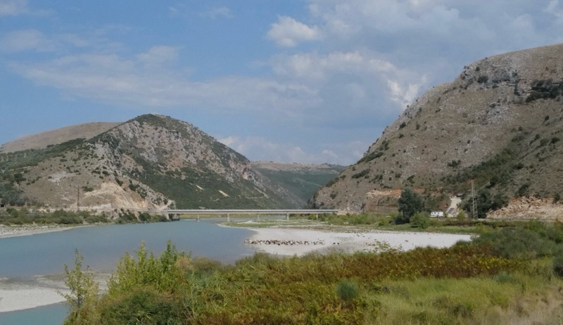 Weiter unten im Tal kommen wir an den Fluss Vjosa der Unesco Schutz genießt.