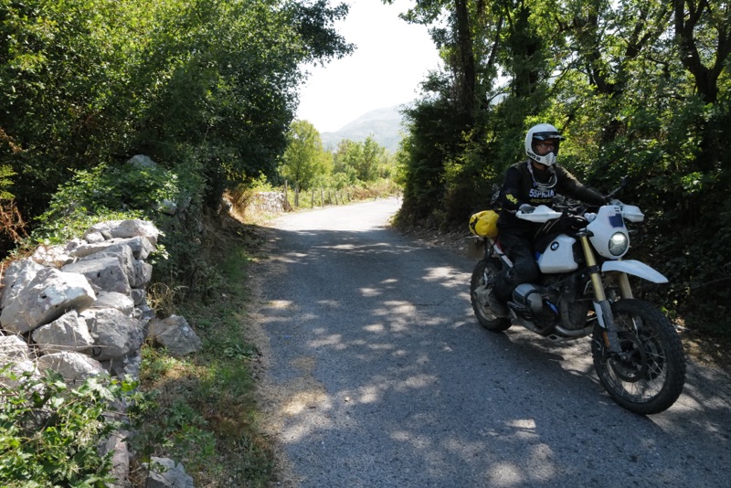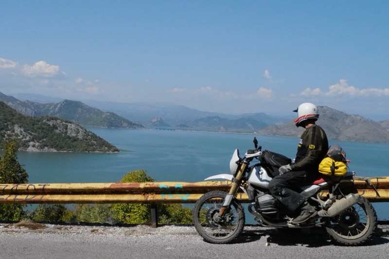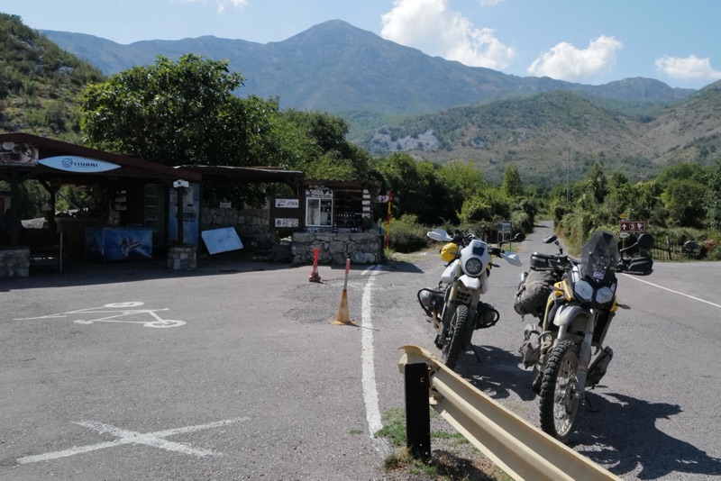 Wer braucht schon ein sauberes Moped… An der Grenze geht alles super zügig, Uller bekommt kaum rechtzeitig die Papiere aus der untersten Lage des Tankrucksacks (der ja jetzt voll mit Getränken und Pistazien ist und noch ein paar Byrekreste und Sesamstangen aus Geiechenland enthält) dann sind wir schon in Montenegro. Dort steht aber dafür eine sehr lange Schlange die nach Albanien will.
