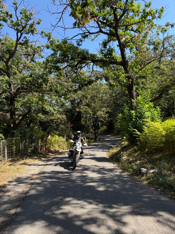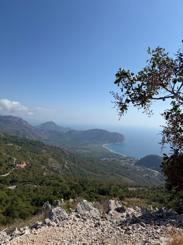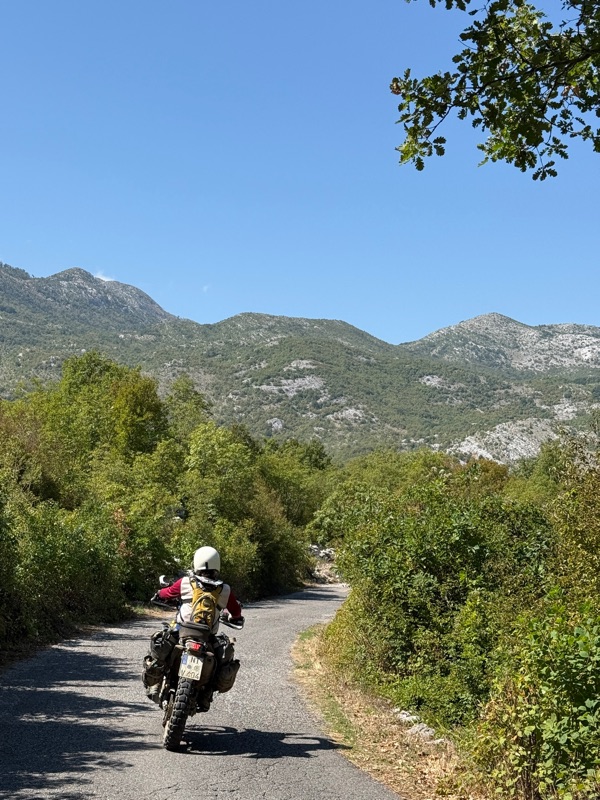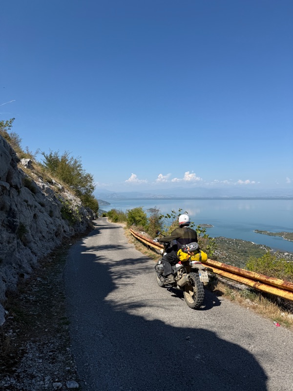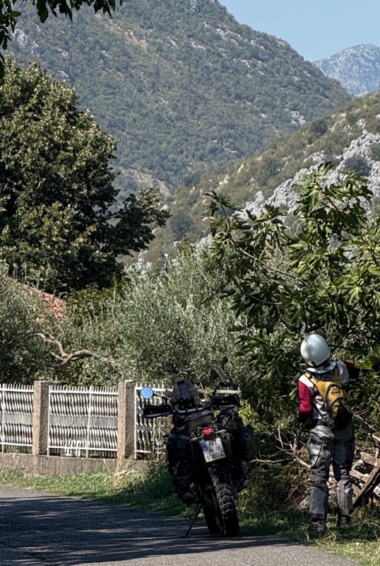 Wir biegen kurz nach der Grenze ab in unseren Track von Kurviger. Hübsche kleine Strässchen und dann kommt die P16. Wie wir später im Zimmer lesen eine der malerischsten Straßen Montenegros. Recht hoch oben über dem Shkodrasee mit toller Aussicht. Und zum Glück auch ein paar Feigenbäumen um meine nie enden wollende Lust auf Feigen etwas zu besänftigen.