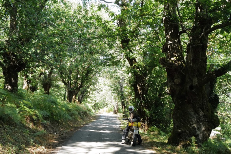 Neben den Ausblicken gibt es auch angenehme Passagen in den dichten Kastanienwäldern mit den uralten Bäumen und mit Farnen.